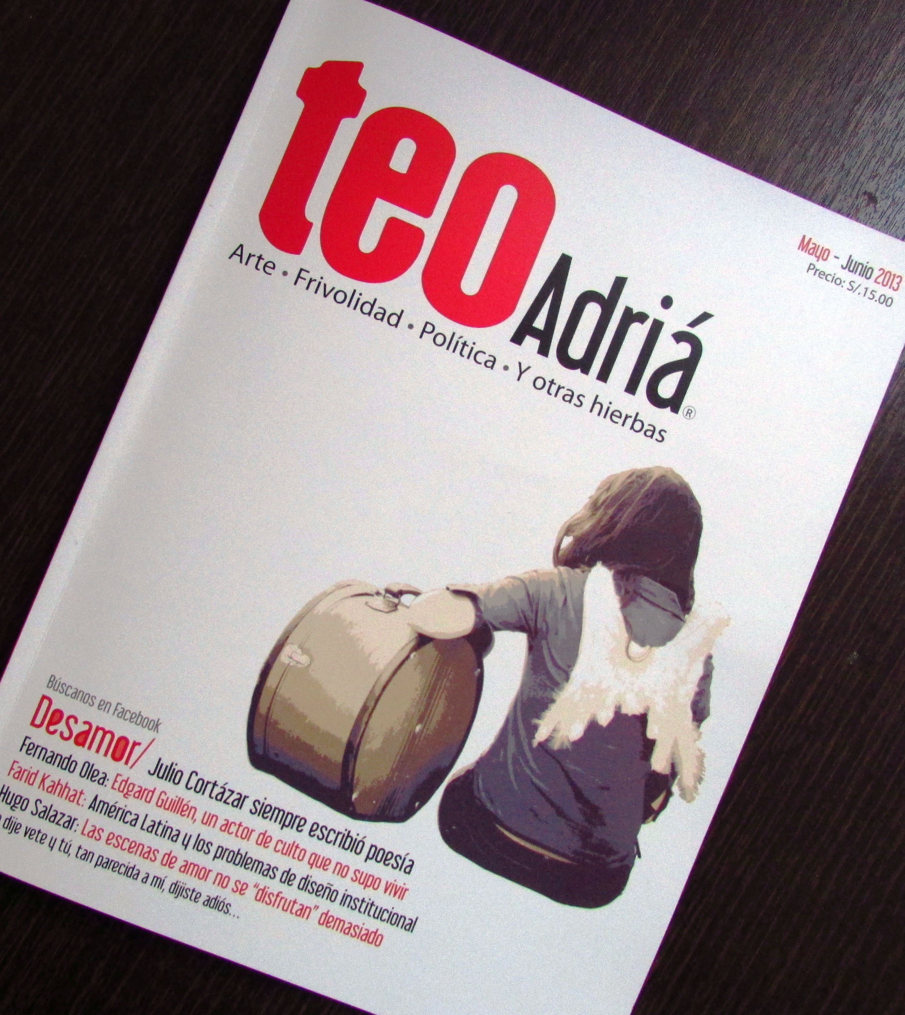Teo Adriá (Arte, Frivolidad, política y otras Hierbas) es una revista temática, inactual y por ahora bimensual que lanza su segundo ejemplar, tomando esta vez como eje el “Desamor”, ese sentimiento que nos pertenece a todos. Teo Adriá -bajo el espíritu del Siglo XXI- nos presenta crónicas, entrevistas, artículos y notas.