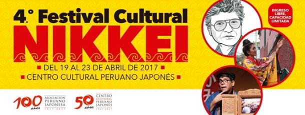 Del Miércoles 19 al Domingo 23 de Abril se realizará en el Centro Cultural Peruano Japonés el 4.° Festival Cultural Nikkei, con un diverso programa de actividades, que buscan celebrar el quehacer cultural de los nikkei, precisamente en el mes en que celebramos los 118 años de la inmigración japonesa al Perú.