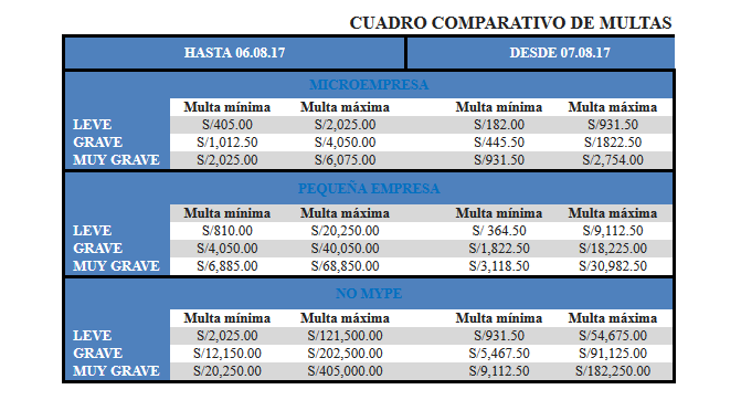 Cuadro comparativo de multas reducción infracciones laborales Mintra Publicado agosto 9, 2017 en 671 × 362 en Ministerio de Trabajo del Perú reduce más de 50% las multas por infracciones laborales Siguiente →