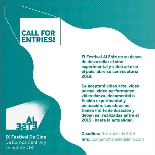 El Festival Al Este de Lima, abre su convocatoria para la sección ExperimentAL Este. Se aceptará videoarte, video poesía, video performance, video danza, documental, ficción experimental y animación.