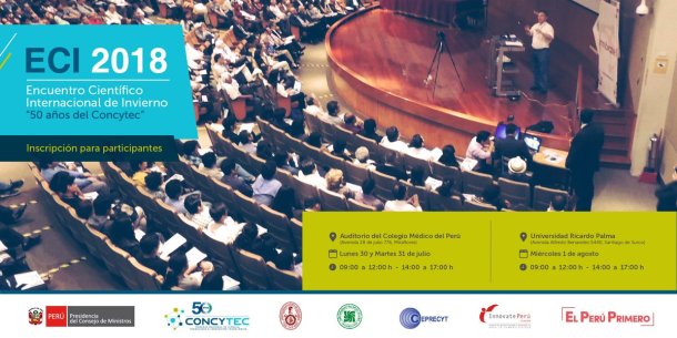El Encuentro Científico Internacional de invierno 2018 en Perú va hasta el 1 de agosto y como desde su creación es totalmente gratuito. En esta edición, los dos primeros días tienen sede en el Centro de Convenciones »Daniel Alcides Carrión» del Colegio Médico del Perú y el cierre será en el Campus de la Universidad Ricardo Palma.