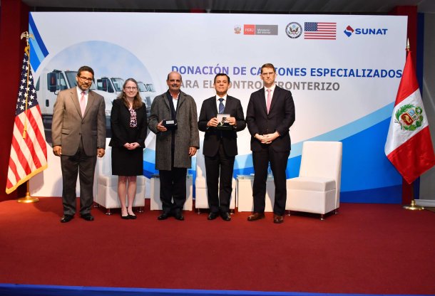 El Gobierno de los Estados Unidos de Norteamérica a través de su Ministro Consejero, Mark Wells, entregó a Perú cuatro modernos camiones especializados con instrumental para combatir el narcotráfico y realizar la tarea del control fronterizo.