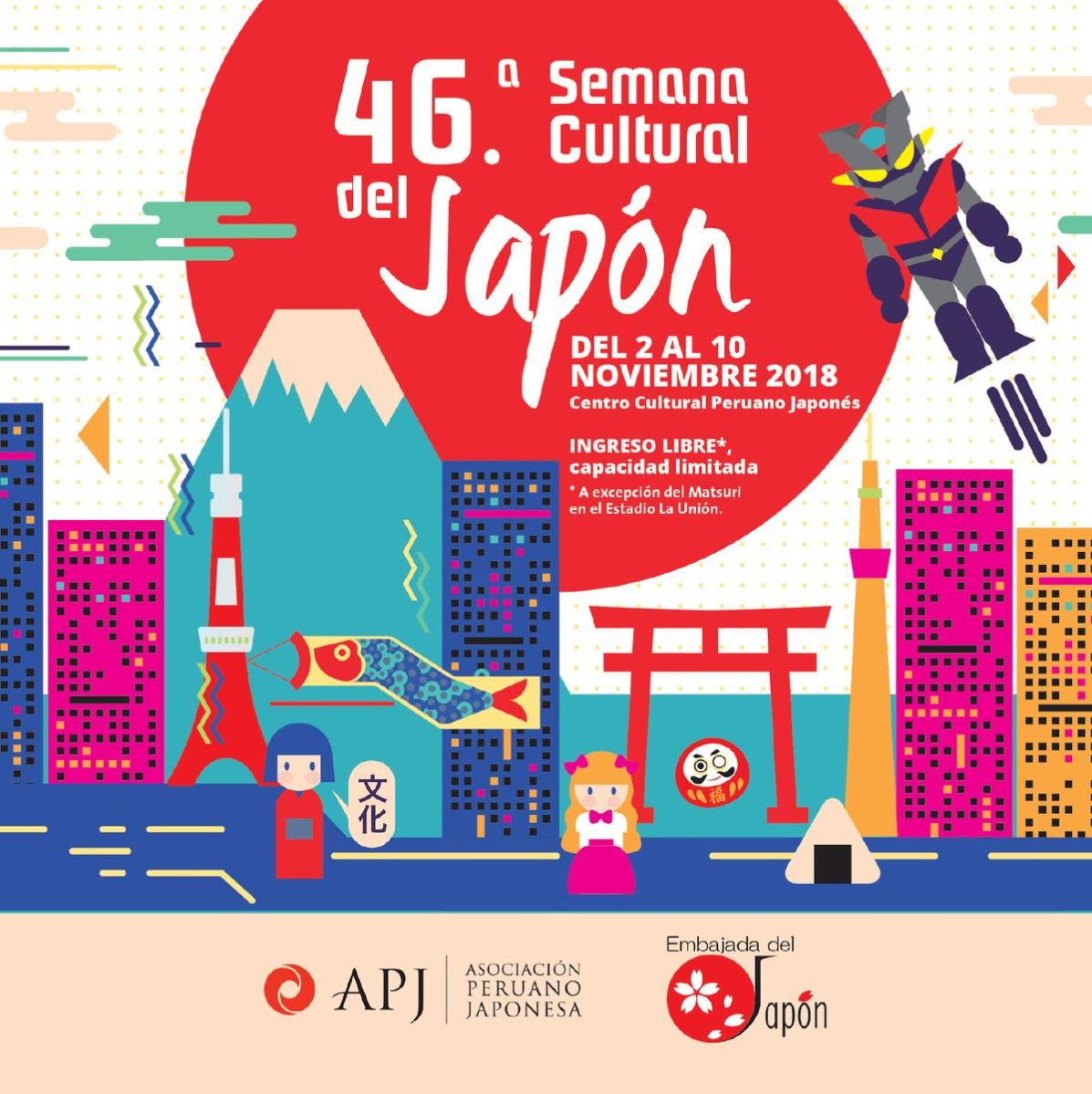 2 AL 10 Noviembre 46 Semana Cultural del Japón Publicado octubre 27, 2018 en 1200 × 1203 en 2 al 10 Noviembre: 46 Semana Cultural del Japón: Gastronomía, Danza, Juegos, Meka (Robots de metal), Historia, Música y más
