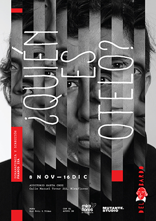 El colectivo “Del Bardo”, que es dirigido por Miguel, estrena la obra “¿Quién es Otelo?”, escrita por Franco Iza, inspirada en el clásico de William Shakespeare, “Otelo”. Esta puesta en escena mezcla la intriga y traición con algunos personajes políticos que tuvo el Perú durante el año 2000.