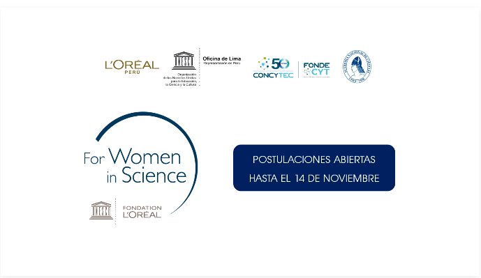 Por las mujeres en la Ciencia Premio Nacional L_Oréal-UNESCO-CONCYTEC- ANC Publicado noviembre 9, 2018 en 689 × 399 en Premio Nacional L’Oréal-UNESCO-CONCYTEC- ANC Convocatoria abierta hasta el 14 de noviembre