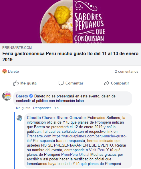 Bareto respondió Feria gastronómica Perú mucho gusto Ilo del 11 al 13 de enero 2019 Publicado diciembre 24, 2018 en 493 × 588 en Feria gastronómica Perú mucho gusto Ilo del 11 al 13 de enero 2019 ← Anterior
