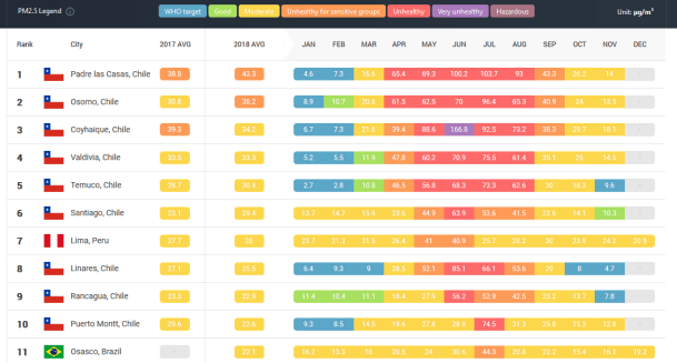 LAS 10 CIUDADES MÁS CONTAMINADAS DE LATINOAMÉRICA RANKING 2018 AIR VISUAL