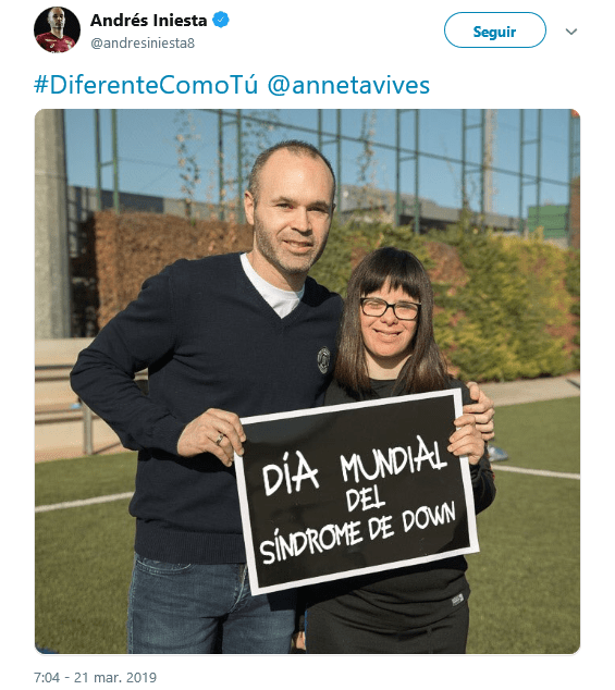 En el marco del Día Internacional del Síndrome de Down. Es por eso que varias figuras del deporte como Juan Martín Del Potro, Lionel Messi y Andrés Iniesta, entre otros, utilizaron las redes sociales para tener en cuenta la inclusión de quienes tienen esa condición. Además, varios clubes de fútbol se sumaron a la campaña, entre los internacionales el Atlético de Madrid.