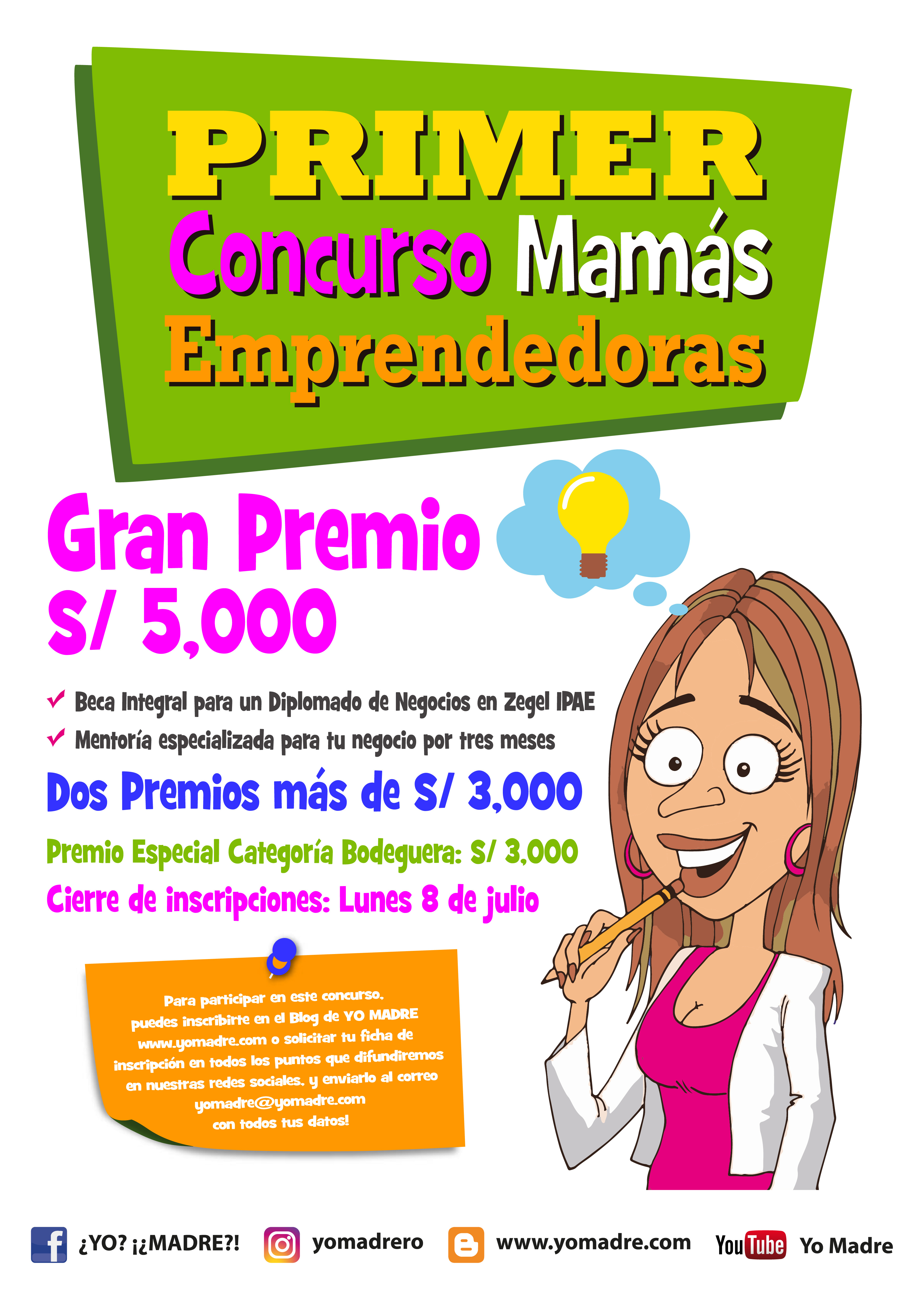 Las inscripciones son completamente gratuitas a través del Blog Yo Madre www.yomadre.com.pe donde las interesadas podrán llenar en línea una ficha de inscripción. El plazo cierra el lunes 8 de julio a las 6.00 p.m. Hasta esa fecha, podrán realizar todas las consultas necesarias a través del correo yomadre@yomadre.com