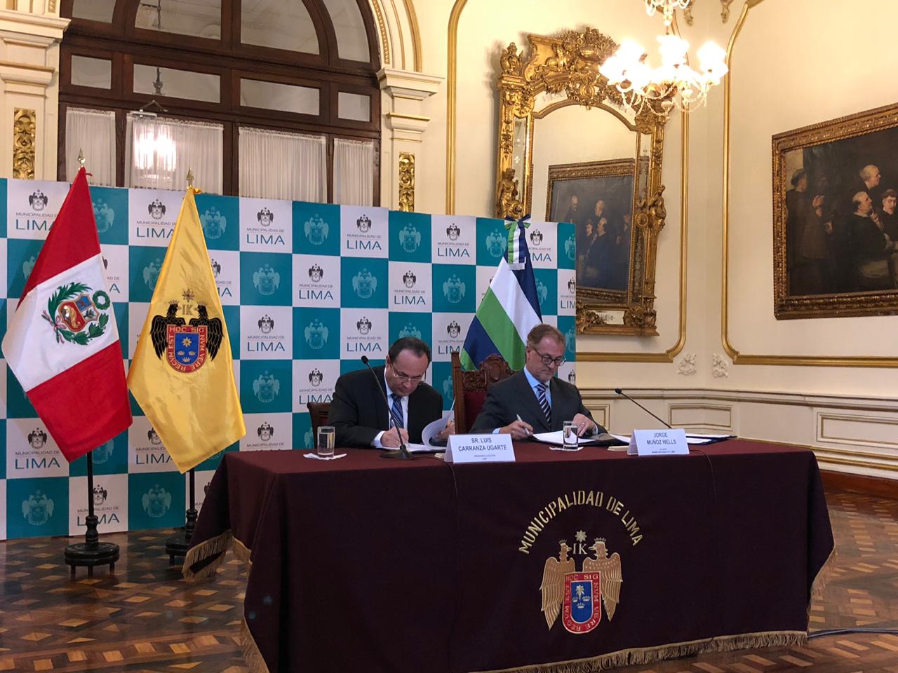 El alcalde de la Municipalidad de Lima, Jorge Muñoz, y el presidente ejecutivo de CAF –Banco de Desarrollo de América Latina-, Luis Carranza, firmaron un Memorando de Entendimiento que permitirá realizar diferentes proyectos en la ciudad de Lima.