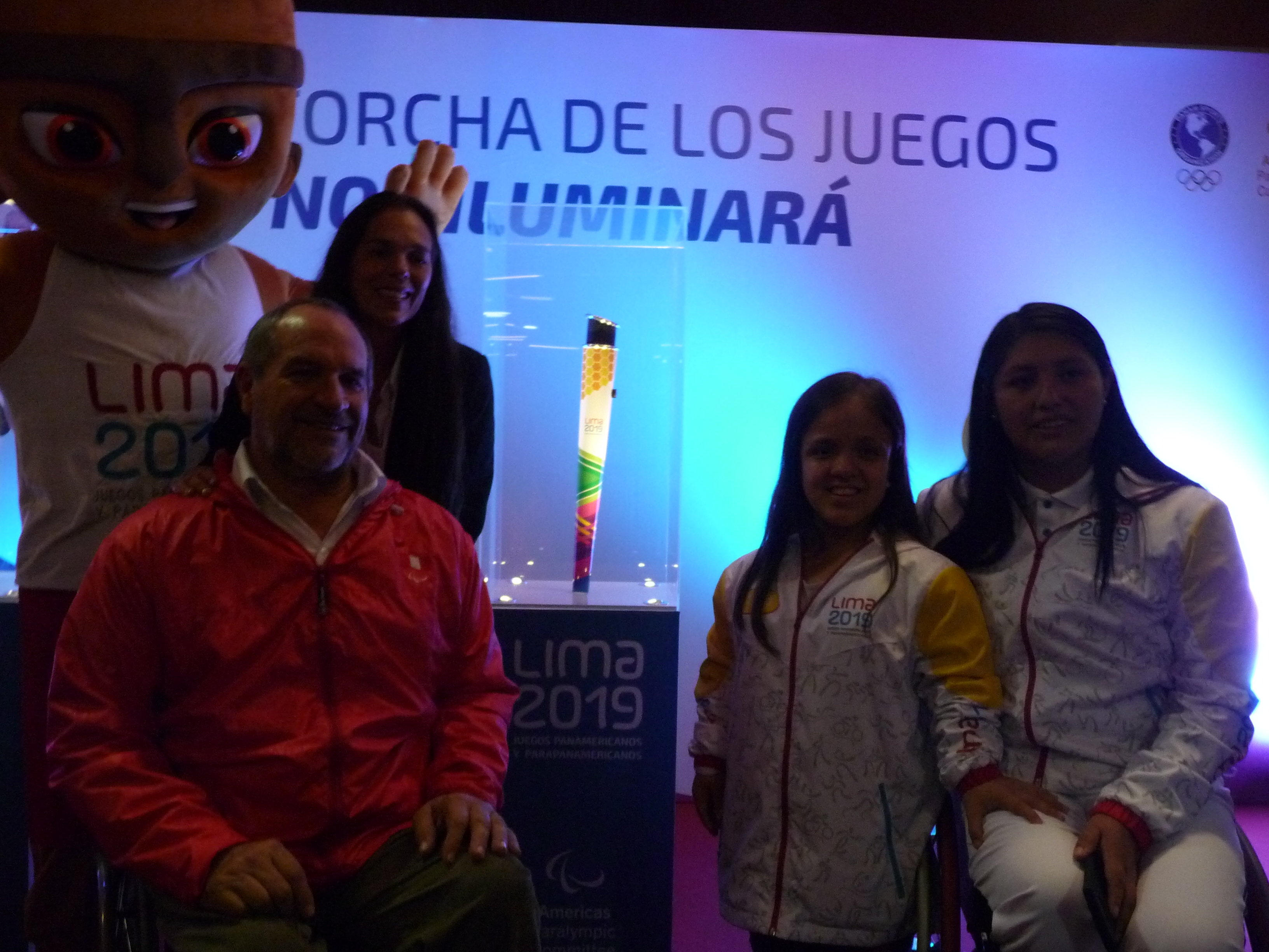 Los deportistas invitados para la presentación de las antorchas y sus portadores hicieron sentir aún más el ambiente deportivo. Las deportistas paralímpicas Pilar Jaúregui, Embajadora de Lima 2019, y Giuliana Poveda, la número 1 en el mundo en su categoría de parabádminton acompañadas por el deportista medallista paralímpico José Gonzales Mugaburu y Lucha Villar, Presidente de la Asociación Nacional Paralímpica del Perú.