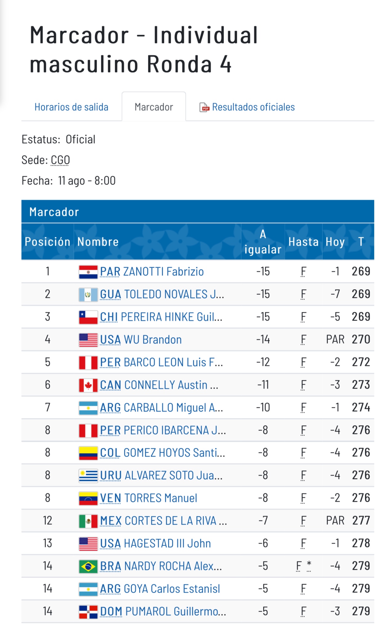 - Barco, de 32 posiciones, quedó en el quinto puesto en el marcador individual masculino en la ronda 4, la última de esa categoría en los Juegos Panamericanos Lima 2019.