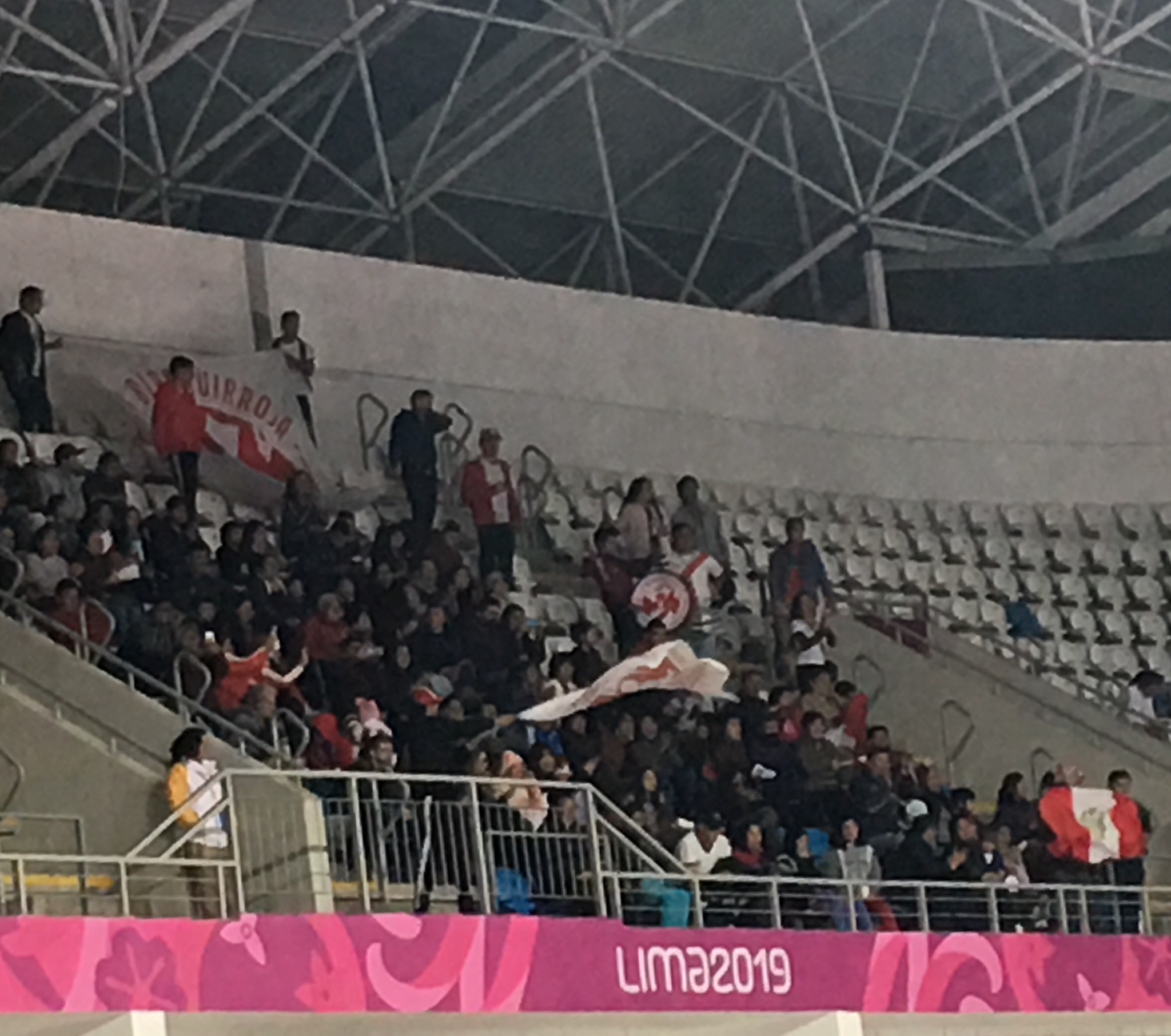 La barra peruana “La Blanquirroja” apoyó en todo momento a viva voz, con baile e instrumentos como corresponde a un hincha profesional y al público local toca alentar a sus deportistas con entusiasmo no sólo cuando la puntuación es favorable: #JugamosTodos