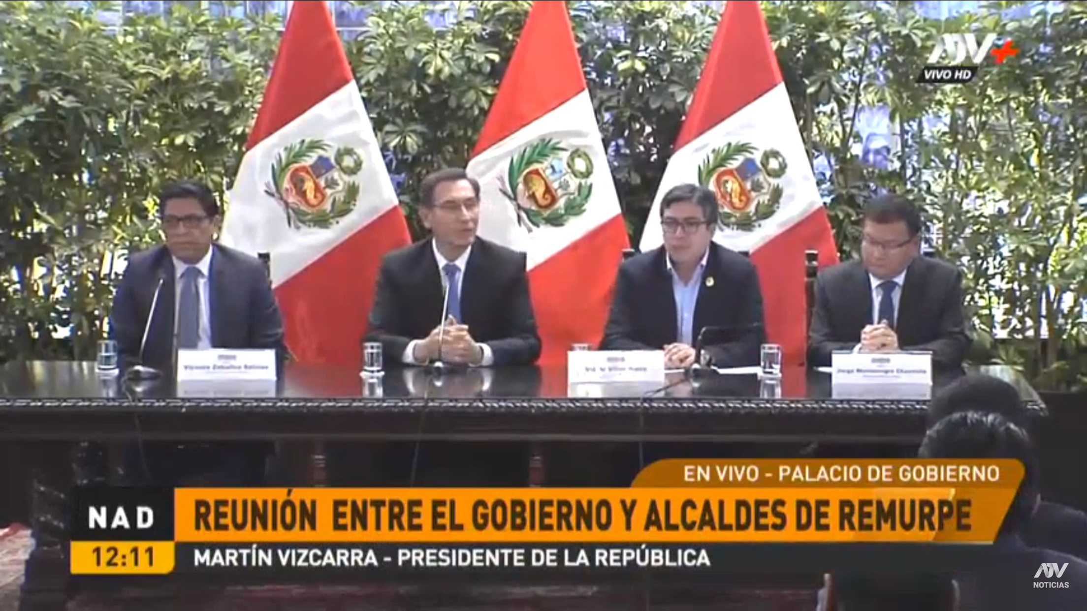 Primera presentación pública del presidente de Perú a una semana que disolviese el Congreso de la República. Breves declaraciones respecto a la reunión del Ejecutivo y los alcaldes de la Red de Municipalidades Urbanas y Rurales del Perú, Remurpe.