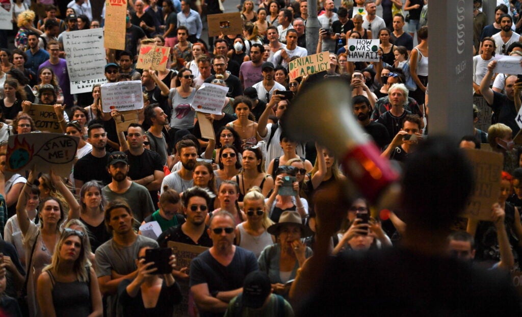 Una de las organizadoras de la protesta liderada por los universitarios ecologistas Students for Climate Justice y el movimiento Extinction Rebellion, Anneke De Manuel, dijo “Estamos protestando porque estos incendios no tienen precedentes, están ardiendo desde setiembre y necesitamos acciones urgentes contra esto y la crisis climática“.