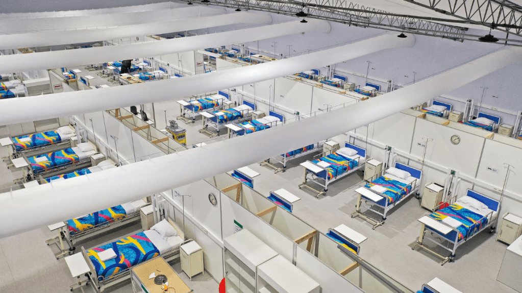 *El Decreto de Urgencia 055-2020, señala reforzar la emergencia sanitaria y la proyección de crecimiento, a través de hospitales con infraestructura temporal, es llegar a 4654 camas de hospitalización y 232 camas de UCI, en las regiones de Piura, Lambayeque, La Libertad, Loreto, Ucayali, Áncash, Arequipa, Cusco. Y en Lima Metropolitana, en San Martín de Porres, El Agustino, Comas, Puente Piedra, y en las ciudades de Huacho y Cañete.