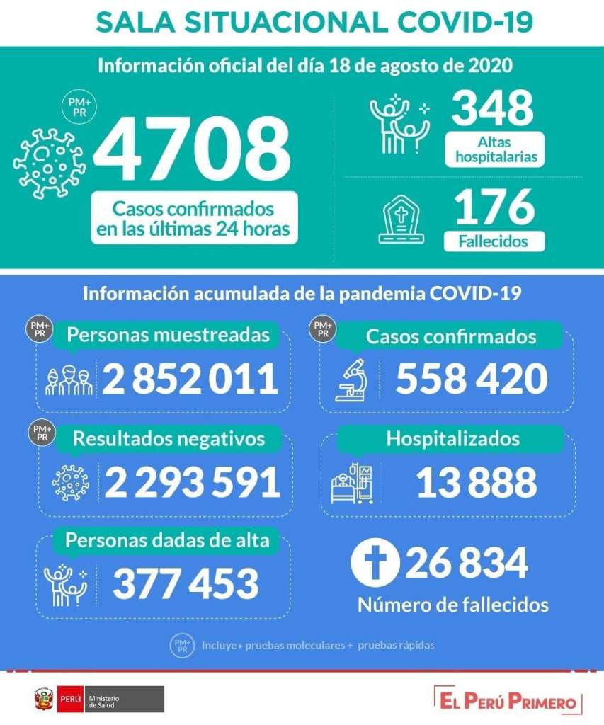 Al 19 de agosto 2020 son 26 834 muertes por la pandemia COVID 19 en Perú, de continuar así, morirán millones.