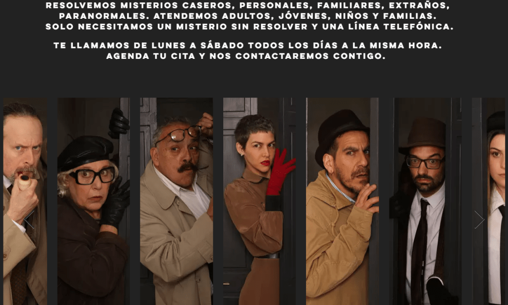 En la órbita del día a día hay pequeños misterios que no se sabe cómo explicar: ¿por qué nunca encontramos las llaves donde las dejamos, o dónde están esos pantalones que llevamos buscando varios días, e incluso, por qué la tele se prende sola en mitad de la noche… Por eso el plantel de capaces detectives ofrece sus servicios para solucionar estas interrogantes mediante una simple llamada telefónica.
