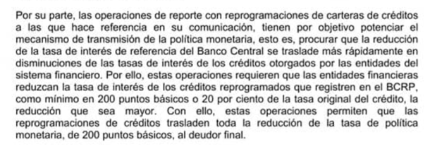 Reprogramación de deudas financieras por emergencia sanitaria COVID 19 en Perú: Bancos peruanos deberían descontar a clientes el mínimo de 20% de tasa sin interés exorbitante debido a la inyección del BCR por de 18 mil millones de dólares a todos los bancos: https://bit.ly/386aic3