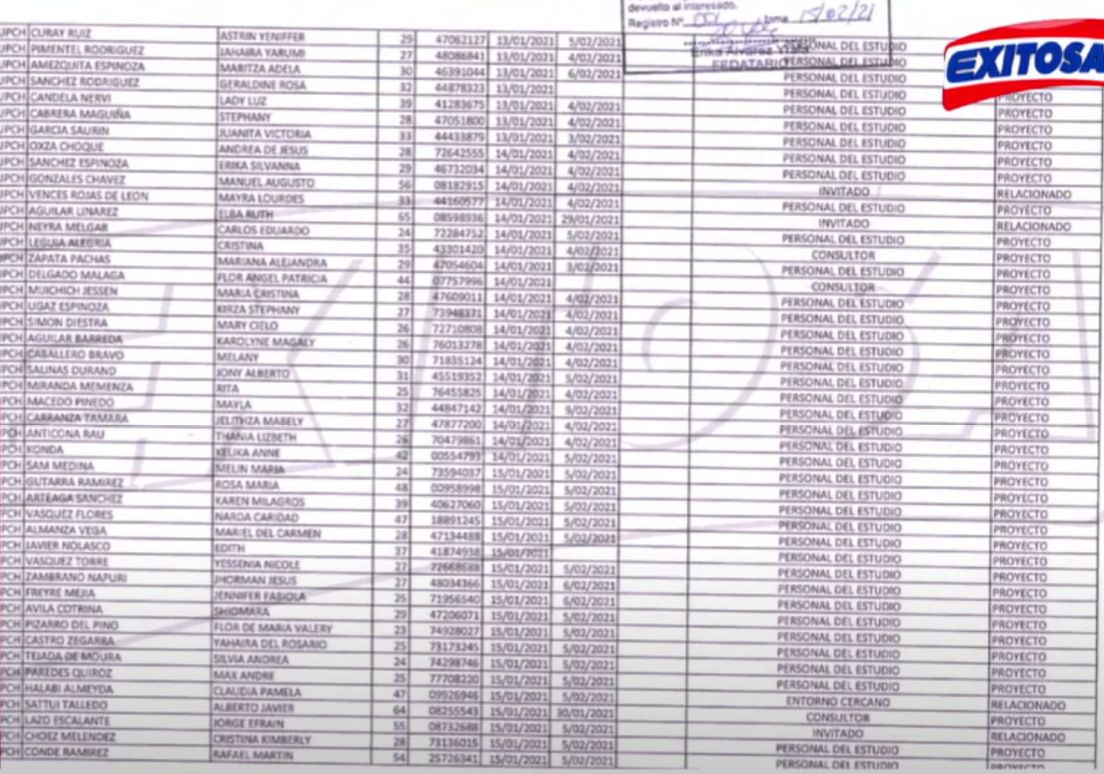 PARTE DE LA LISTA DE QUIENES RECIBIERON LA VACUNA CHINA SINOPHARM DE MANERA ILEGAL.
