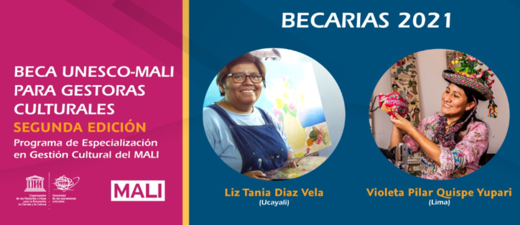 Liz Tania Díaz Vela (47 años), procedente de Callería (Pucallpa – Ucayali) y Violeta Pilar Quispe Yupari (31 años), procedente de Chorrillos (Lima), fueron elegidas entre decenas de candidatas provenientes de diversas zonas del Perú como las felices ganadoras de la Beca UNESCO – MALI para gestoras culturales.