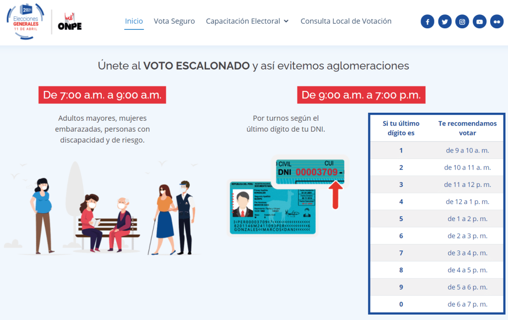 HORARIOS SUGERIDOS PARA VOTAR Y EVITAR AGLOMERACIONES: VOTO ESCALONADO:
