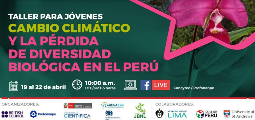 En el objetivo de impulsar la creación de un Jardín Botánico Nacional, el Concytec ofrece ―junto al British Council, Profonanpe, la Universidad Científica del Sur, la Embajada Británica y la Asociación Pro Jardín Botánico Nacional de Lima― del 19 al 22 de abril, y de forma virtual y gratuita, el Taller para Jóvenes sobre el Cambio climático y la pérdida de diversidad biológica en el Perú.