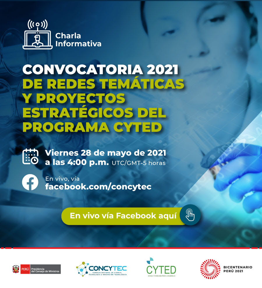 En la charla informativa virtual que ofrecerá Concytec, se expondrán los detalles de la convocatoria, este viernes 28 de mayo de 2021, a las 4:00 pm.
