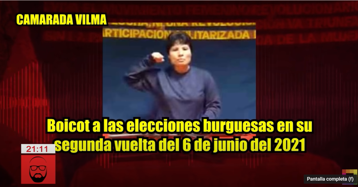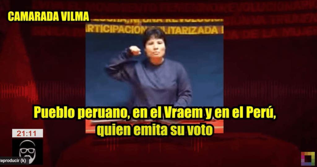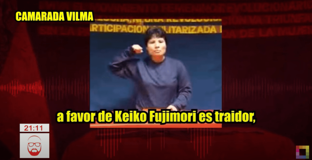 Desde el minuto 10:16 al minuto 11 habla la Camarada Vilma de Sendero Luminoso-ahora se hacen llamar Militarizado Partido Comunista del Perú con su brazo político Movadef en el video superior y en éste habla del papel de sumisión que deben tener las mujeres: