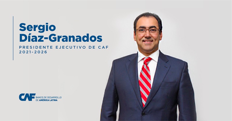 El Directorio de CAF -banco de desarrollo de América Latina, integrado por los Ministros de Economía y Finanzas, Presidentes de Bancos Centrales y altas autoridades económicas de los países accionistas, eligió por mayoría a Sergio Díaz-Granados como nuevo Presidente Ejecutivo de la institución, en una reunión semipresencial realizada en el Palacio Nacional de México.