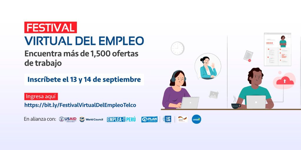 La nueva edición del Festival Virtual del Empleo organizada por la Municipalidad de Lima ofrecerá más de 1,500 ofertas laborales para diferentes puestos, como ejecutivo de ventas, supervisor, operario de producción, atención al cliente, agente de seguridad, asistente de marketing, entre otros, con el apoyo del Proyecto de Inclusión Económica Usaid-Woccu, Cesal y el programa Empleat-Perú.