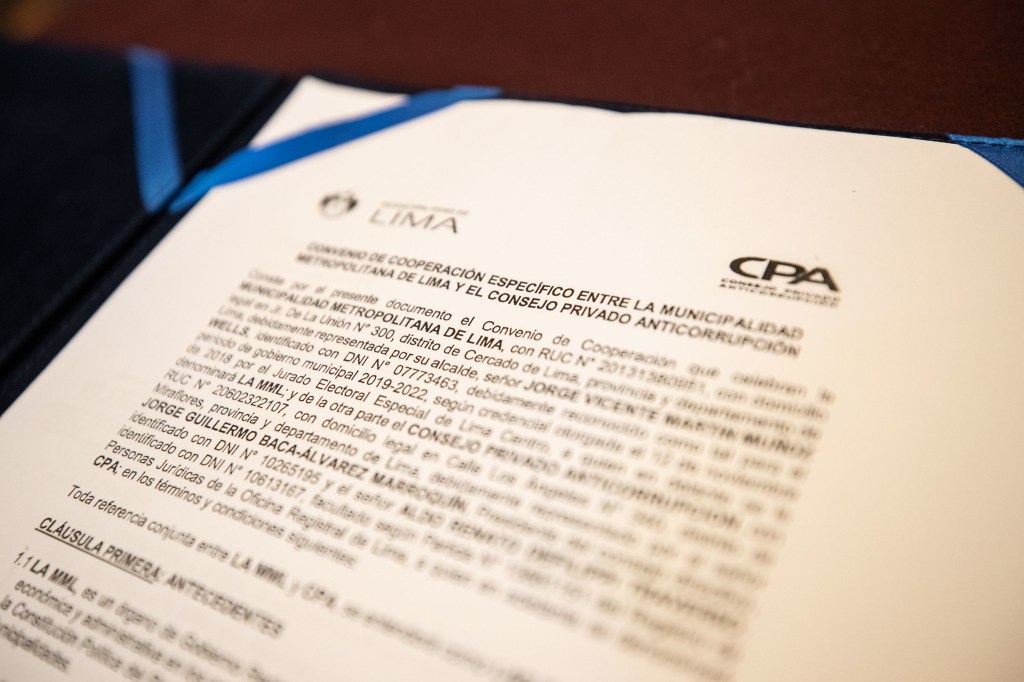 La Municipalidad de Lima y el Consejo Privado Anticorrupción (CPA) suscribieron convenio de cooperación específico que, de manera gratuita, otorga a la comuna la herramienta tecnológica de una plataforma electrónica de compras, denominada EPG (software), para fortalecer la transparencia en los procesos de compra de bienes y servicios.