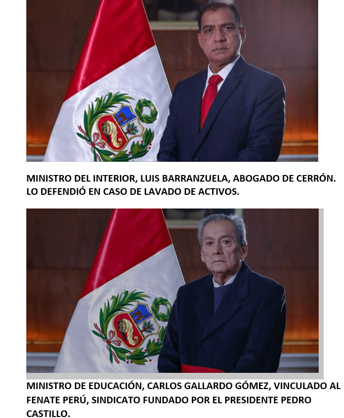 Por citar alguno de los ratificados, continúan Dina Boluarte, con varias pruebas de su participación en la organización criminal Los Dinámicos del Centro, vinculados al partido de gobierno y Anahí Durand, por sus vínculos filo terroristas. En casi la totalidad del nuevo gabinete, los hechos han demostrado que continúan con el objetivo del cambio de Constitución política del Estado para decir que eso »resuelve todos los problemas del Perú», pero es el discurso izquierda extrema marxista para copar el poder al estilo Venezuela y Cuba, por citar dos ejemplos largamente conocidos.
