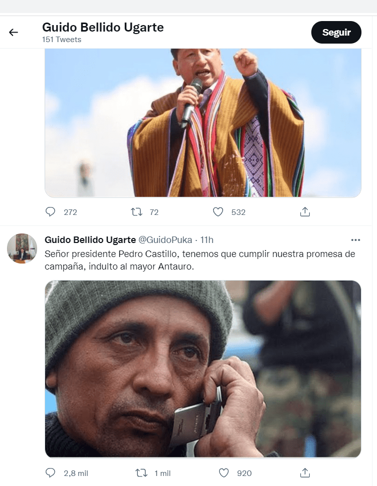 Guido Bellido Ugarte fuera de la presidencia del Consejo de Ministros tuitea: