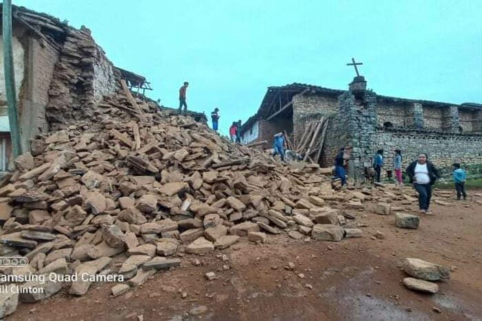 Una de las primeras imágenes que muestran la magnitud del sismo muestra derrumbada la torre de la iglesia de Jalca Grande, patrimonio histórico del Perú del siglo XVI, en la provincia de Chachapoyas, Amazonas.