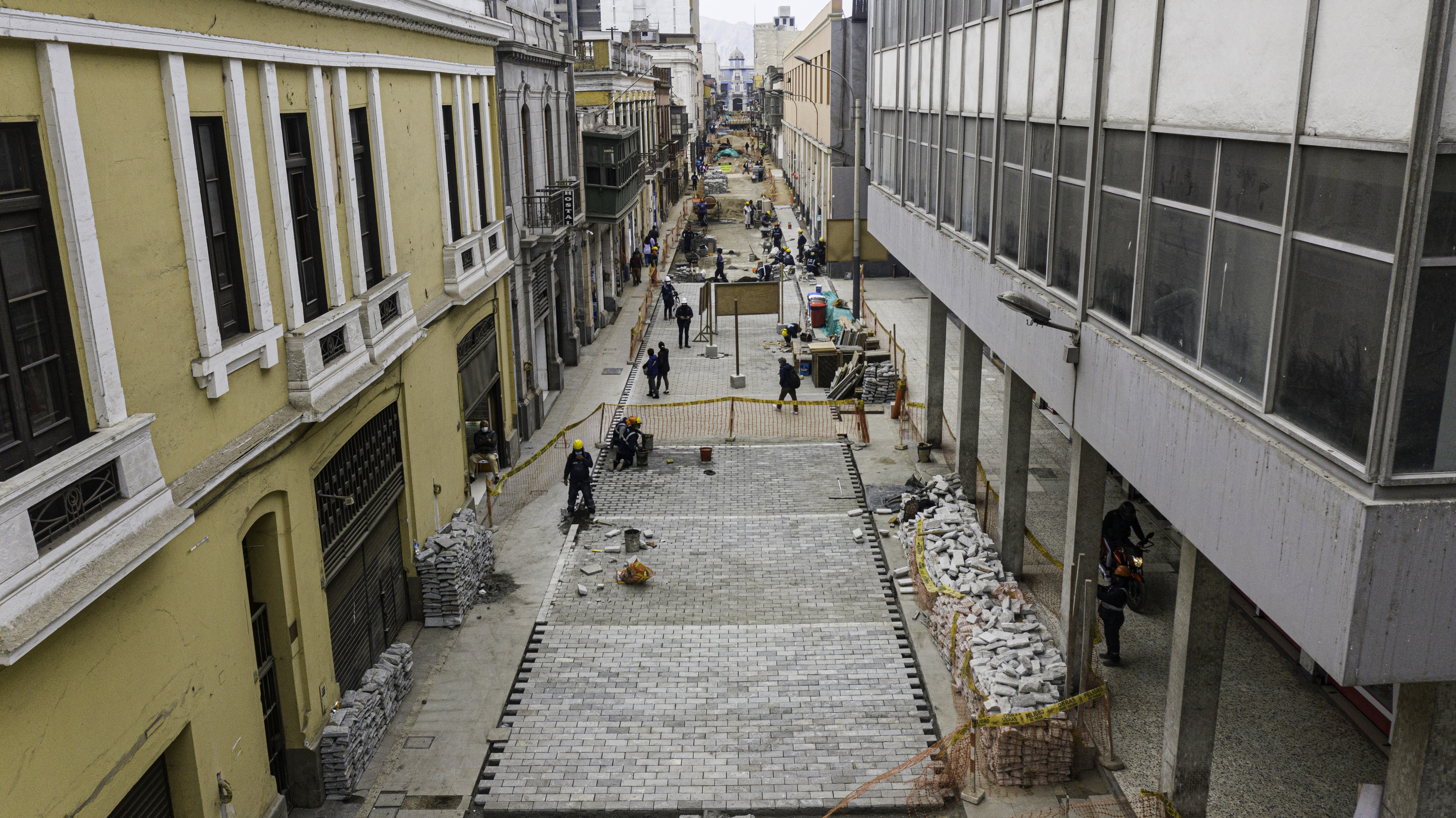 La obra, en total, comprende la pavimentación con piedra de 41 cuadras del Centro Histórico de Lima, así como la renovación del mobiliario urbano, redes sanitarias e iluminación pública. A su vez, comprende espacios inclusivos para un mejor acceso de las personas con movilidad reducida, dado que se está nivelando la diferencia entre la calzada y la vereda.