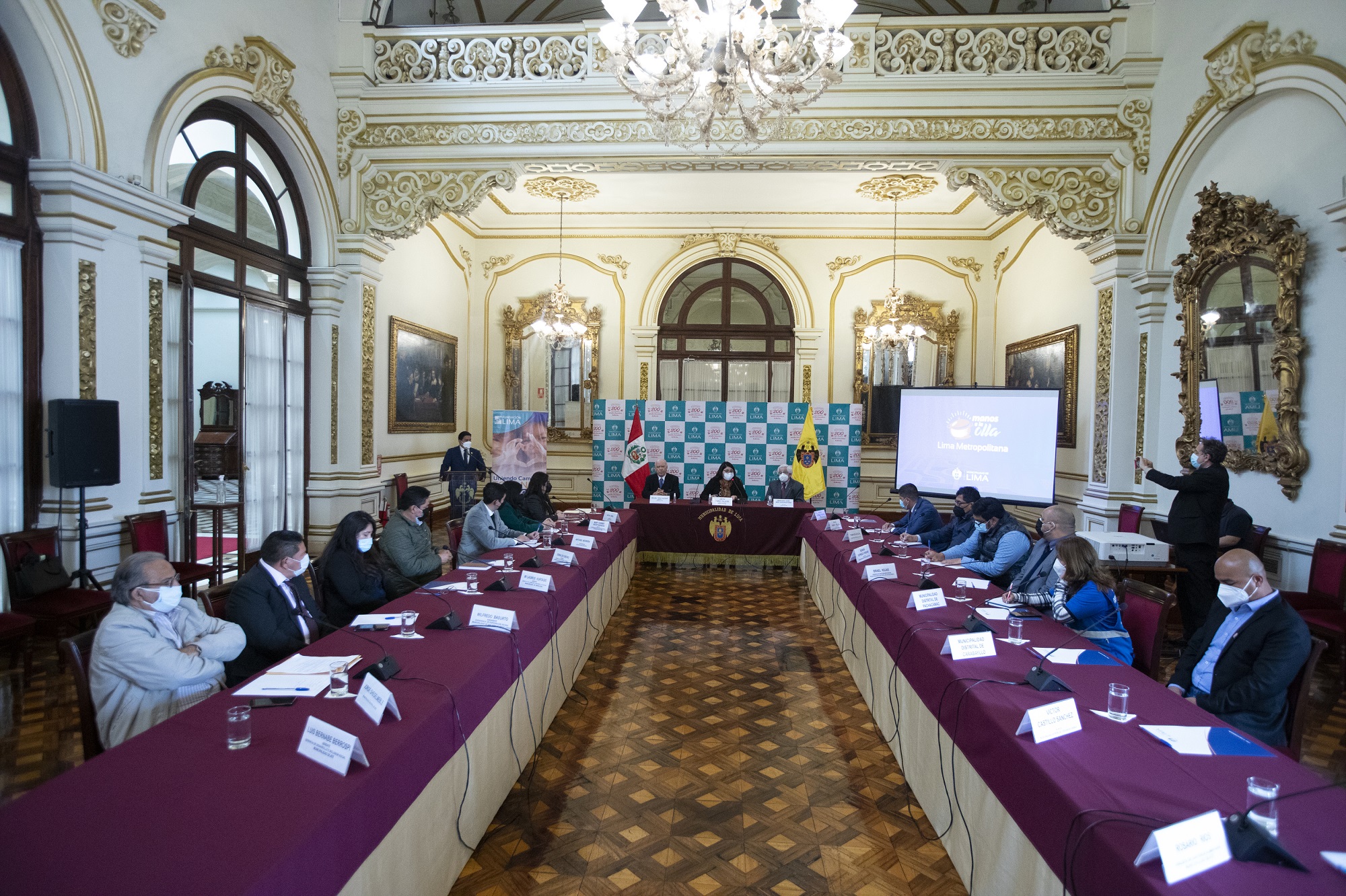 En la reunión de trabajo estuvieron presentes el alcalde de San Juan de Miraflores, Daniel Castro Segura; de Puente Piedra, Rennán Espinoza y los representantes de San Juan de Lurigancho, Ate, Villa María del Triunfo, Pachacámac, Comas, Santa Rosa, Independencia y Carabayllo, distritos que albergan la mayor cantidad de ollas comunes.