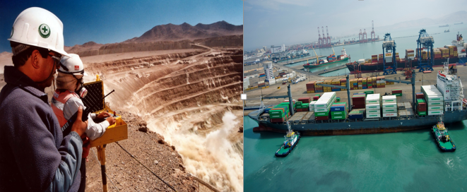 Le siguió los hidrocarburos (US$ 1,303 millones 705 mil) con un descenso de -31.8%, la pesca y el agro. Las partidas principales fueron el cobre y sus concentrados (US$ 4 mil 310 millones 051 mil) con un incremento de 6%, el oro, cátodos y secciones de cátodos de cobre refinado, gas natural, harina de pescado, cinc, molibdeno, hierro y plomo.