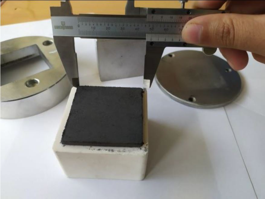 Foto: Placa superconductora de YBCO de dimensiones 5 cm x 5 cm