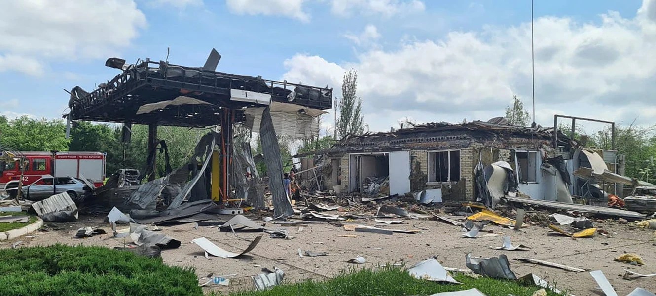 Foto: Pavlo Kyrylenko/Administración Regional Militar-Civil de Donetsk/Reuters en CNN en español. Vista de una gasolinera gravemente dañada tras un ataque aéreo ruso en Toretsk, Ucrania, el 29 de mayo