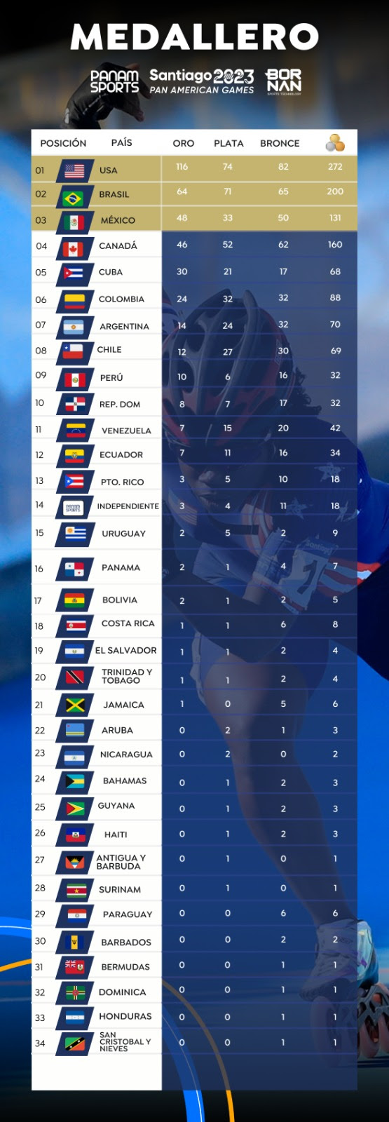 - Diego Elías ( actual número 2 del ranking mundial de squash y bicampeón Panamericano 2019 y 2023): squash, single.