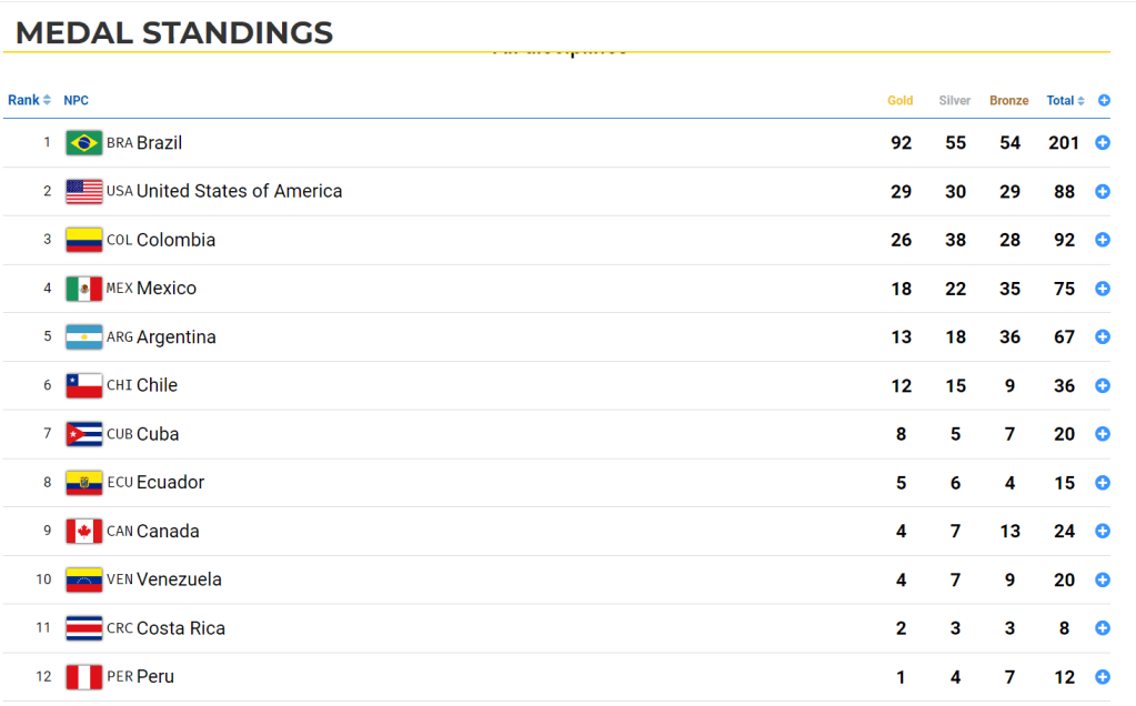 Perú duplicó el resultado de 15 medallas que tuvo en los Juegos Parapanamericanos Lima 2019, y en esta edición Santiago 2023 ganó 34.