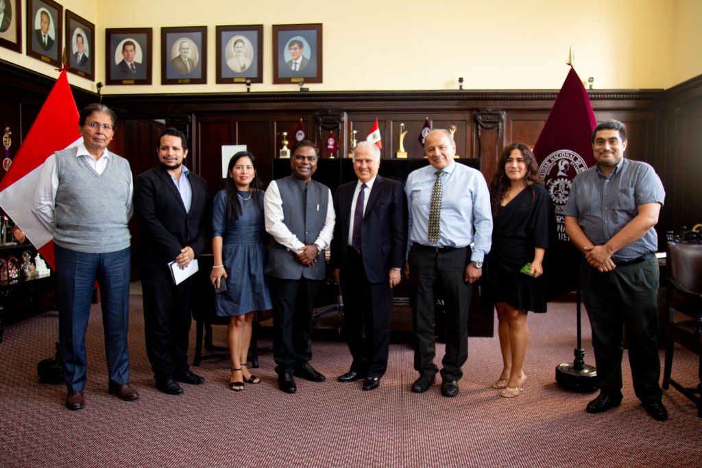 “Estamos bastante interesados en la posibilidad de establecer acuerdos con la UNI e instituciones académicas de la India. Sabemos que se pueden establecer colaboraciones en diferentes ramas de la ingeniería, que se pueden aprovechar muy bien, manifestó el Sr. embajador de la India en Perú y Bolivia, Vishvas Sapkal, en la reunión que sostuvo con el rector de la UNI, Dr. Alfonso López Chau, el vicerrector de Investigación, Dr. Arturo Talledo, y el decano de la Facultad de Mecánica, Dr. Tito Vilchez.