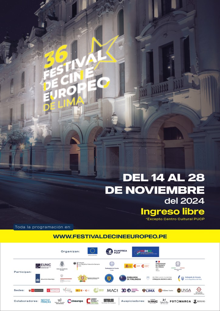 Del 14 al 28 de noviembre, el Festival de Cine Europeo de Lima regresa con su 36ª edición, trayendo lo mejor del cine europeo de manera totalmente gratuita. Con una variada cartelera, el Festival será una ventana única al cine europeo contemporáneo. Con 35 películas 129 funciones distribuidas en 16 sedes de Lima, Cusco, Arequipa, Piura, Trujillo y Chiclayo, el público podrá elegir entre una variada programación de cine para todos.