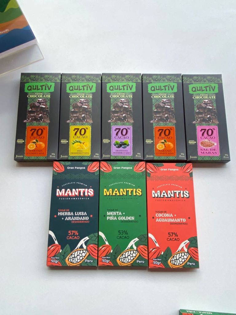 En la zona Perú del mismo recinto, se encuentra la presentación degustación del chocolate Q’ultiv de la marca Gran Pangoa de la región Junín con 70% de cacao con sal de maras, quinua, bitter, etc., en total son nueve que tiene en venta según comenta su anfitriona en el módulo que atiende a los participantes en el APEC 2024, Alexandra Benvenutto. Para ventas: 917 677 889.