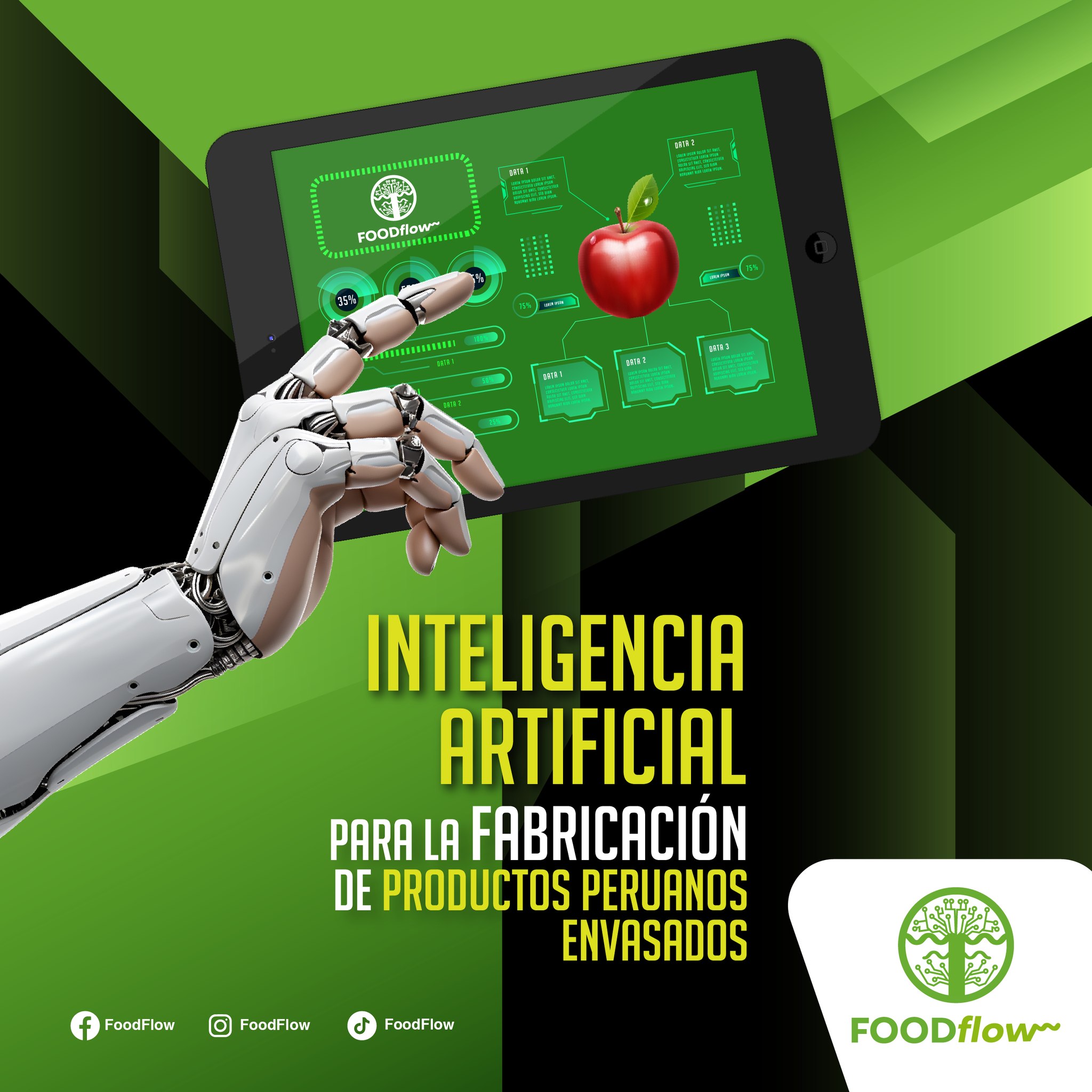 La ingeniera electrónica Nataly Andrea Rojas Barnett (CEO) y su socia la MSc. Giuliana Ore (CTO) decidieron crear FOOD FLOW, la primera Inteligencia Artificial para formular y fabricar productos peruanos envasados saludables en plantas de alimentos con certificación HACCP, BRC y que genera nuevas oportunidades laborales para jóvenes empresarios que desean crear productos alimentarios bajo su propia marca y la creación de nuevos productos peruanos de exportación saludables y libres de octógonos.