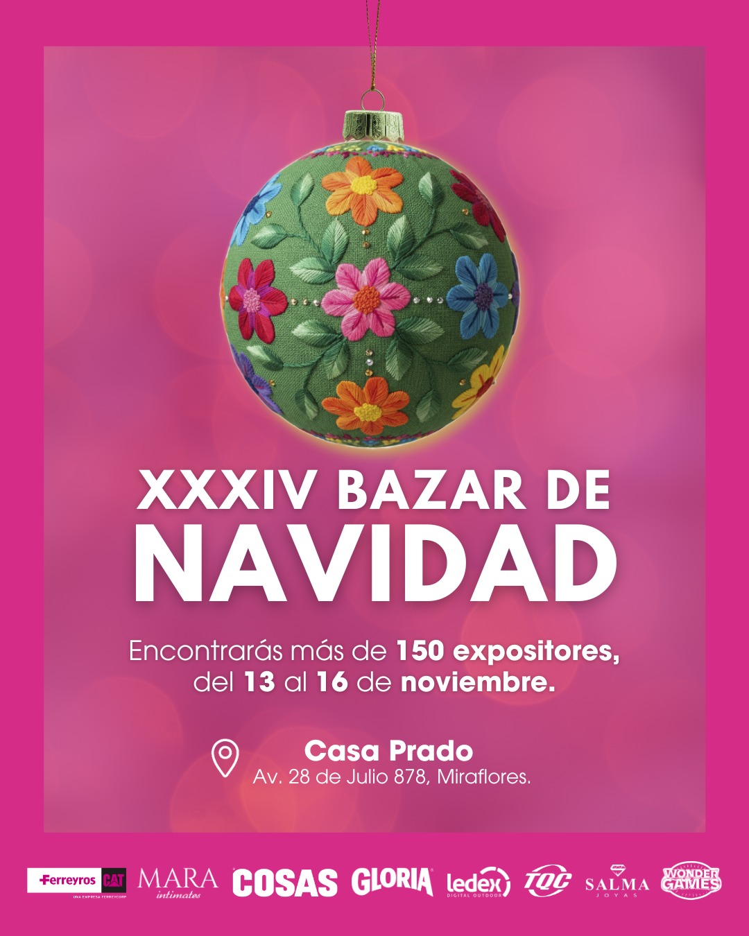 Los asistentes que visiten el Bazar de Navidad en la Casa Prado, encontrarán diversas opciones de regalo para Navidad: ropa para toda la familia, calzado, juguetes, joyería, bisutería, productos de belleza, decoración de casa, papelería, plantas, artículos deportivos, entre otros. Además, contará con una zona gastronómica variada para disfrutar en familia o amigos, y la Súper Tómbola con gran variedad de premios.