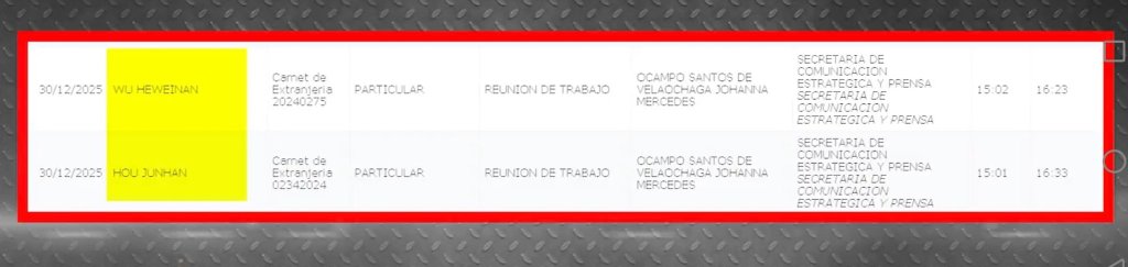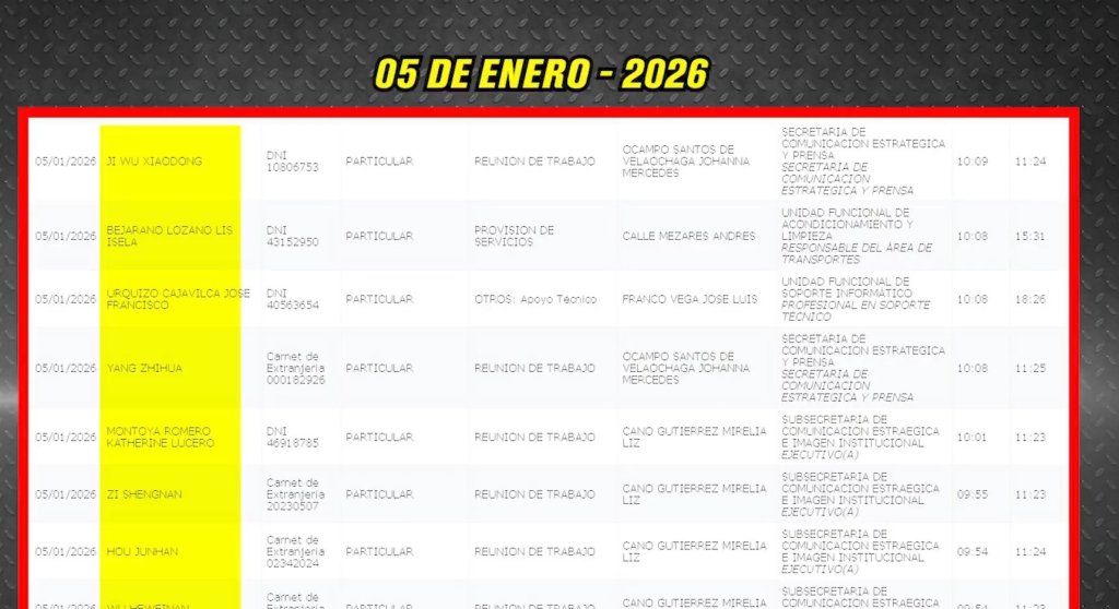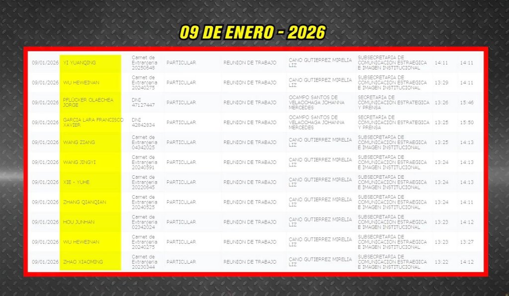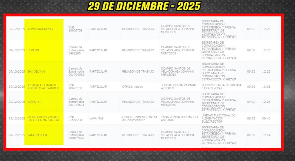 EL PERIODISTA KIKE BRAVO PRADO RECUERDA LAS VISITAS A PALACIO DE GOBIERNO CON REGISTRO DE CIUDADANOS CHINOS EN DICIEMBRE 2025 Y ENERO 2026 DURANTE EL EJERCICIO DEL PRESIDENTE TRANSITORIO JOSÉ JERÍ: