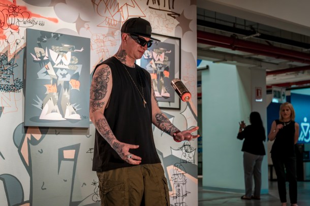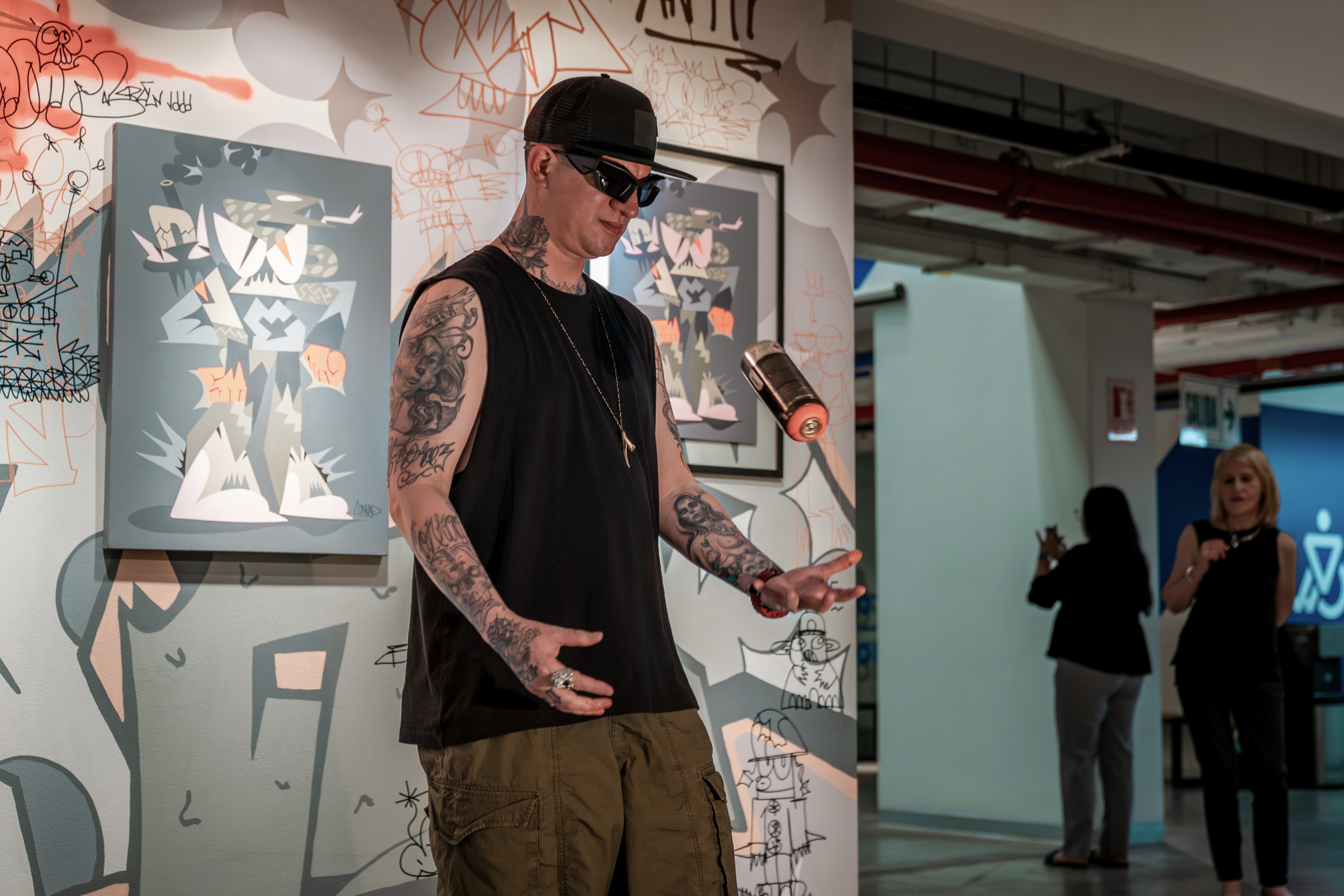El artista Ricardo Florez, conocido como Conrad, presenta una propuesta que explora el traslado del graffiti y el muralismo urbano al espacio expositivo, manteniendo la lógica de trabajo propia de la calle: decisiones rápidas, intervención directa y apertura al error.